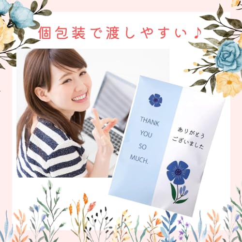 クールなブルーのお花がプリントされた、「ありがとうございました」のメッセージが入ったパッケージです。
