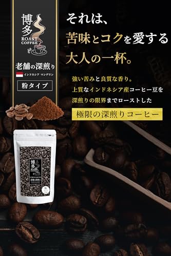 コーヒー粉 博多ローストコーヒー マンデリン 【焙煎】 深煎り 苦み コク (保存 便利 ジップ式) (1袋(200g×1), A.老舗の深煎り マンデリン)