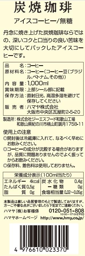 ハマヤ 炭焼アイスコーヒー無糖 1L ×4本