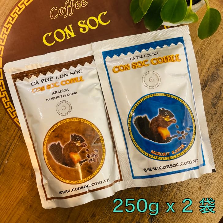 CON SOC ベトナムコーヒー (2種セット 250gx2袋 中挽き) ヘーゼルナッツフレーバー 高級アラビカ ロブスタ ドリップ粉