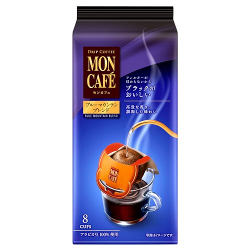 高貴な香り、調和した味わい【商品特徴】高級コーヒー豆“ブルー マウンテン”をブレンドした、高貴な芳香と絶妙な味わいバランスの逸品。【ブランド説明①】フィルターが浸からないから ブラックがおいしい。モンカフェはハンドドリップの流儀に忠実にこだわりました。雑味のないクリアな味わいはぜひブラックで味わっていただきたいこだわりのおいしさなのです。ブラックがおいしいからこそ、ミルクを入れてももちろん、おいしくお楽しみいただけます。すっきりとした味わい。モンカフェ独自のハンドドリップの流儀に忠実な浸からない構造。モンカフェは、お湯を注いだ時にフィルターがコーヒーに浸からない構造になっています。ハンドドリップの流儀に忠実なこの構造だからこそ、コーヒーのおいしいところだけを抽出でき、雑味のないすっきりとした味わいが実現できるのです。