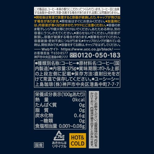 ブラック無糖 UCC BLACK無糖 RICH 缶コーヒー 375g×24本【アイスコーヒー】【香料無添加】【ケース】【箱】