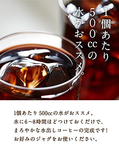1個あたり500㏄の水がおススメ。水に8時間ほどつけておくだけで、まろやかでコクのある水出しコーヒーの完成です! お好みのジャグをお使いください。