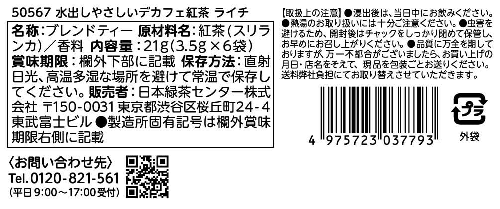 【2種セット】水出しやさしいデカフェ紅茶 ライチ 瀬戸内レモン 各6P×2袋 ティーブティック