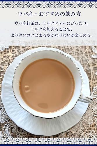 ■産地特徴: スリランカの各地域で栽培される紅茶は、その土地の気候や雨量等によって、風味が変わります。ウバ産(クオリティーシーズン外)は、深い渋み、濃い水色、主張しすぎないマイルドな風味が特徴です。 ヌワラエリヤ産は、程よい渋みと華やかな香り、優雅で上品な味わいが楽しめます。