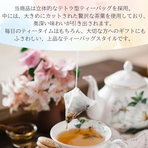 【甘い香りが広がる上質なフレーバー】ストロベリー、バニラ、クリームの甘い香り広がる、上品な仕上がりです。フレーバーのコンビネーションが生み出す絶妙な香りとテイストは、華やかなティータイムから落ち着いたティータイムまで、様々なシーンにご利用いただけます。ホットで香り高く、夏にはアイスティーや水出しでもご利用可能です。