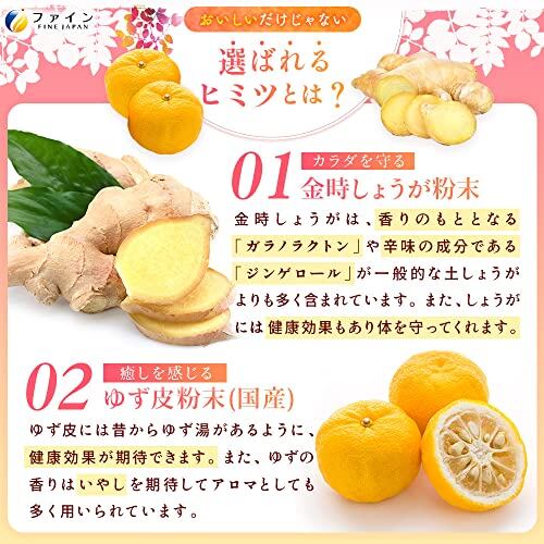 香りの素となる「ガラノラクトン」、辛味の成分「ジンゲロール」が多い金時しょうがを100mg配合使用。さらに温める効果がある国産ゆず皮、ビフィズス菌の栄養となるオリゴ糖を配合。