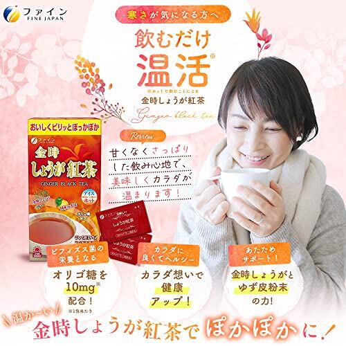 「ファイン 金時しょうが紅茶 60包」は、紅茶エキスを主成分に金時しょうがと国産ゆず皮、オリゴ糖を配合したしょうが紅茶です。