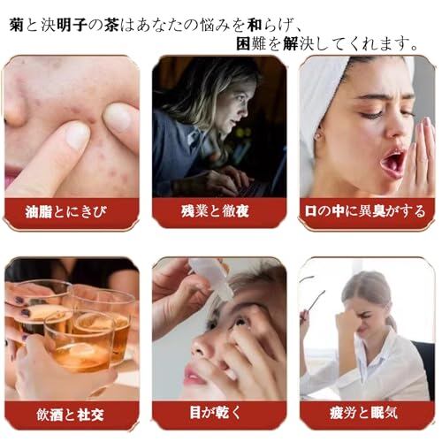 パソコンの前で仕事をすることが多い人に向いています。夜更かしが多いと目の調子が悪くなります。一日一杯のカスミソウを飲むと、目がリラックスして快適になります。脂っこい辛い料理を食べることが多い方は、食後にケツメイシを一杯飲むのもおすすめです。