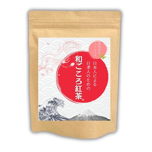 【日本の紅茶】一般的な紅茶は、インドや中国の茶葉で生産されている西洋紅茶です。この「和ごころ紅茶」は、静岡県産べにふうき茶を100%使用した純国産紅茶です。 茶葉の大産地である静岡の老舗茶畑で生産され、紅茶用の品種として開発された「べにふうき」を使用しています。外国産と比べて渋みが非常に少なく、日本茶の優しさと紅茶の味わいが引き立った上品な紅茶です。