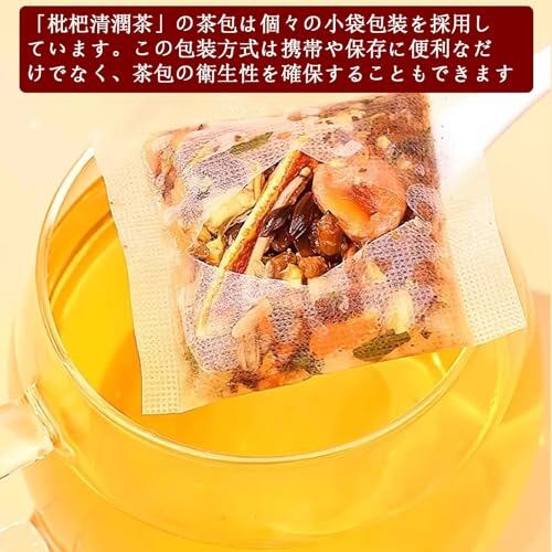 ビワ清潤茶、12種類の良質な原料、ビワの葉、あすなろの実、甘草、莫大海、大麦、オレンジの皮、桑の葉、菊の花、ペパーミント、ユリ、スイカズラ、淡竹の葉、科学的な配合を経て、無漂白の不織布で作られた組み合わせのティーバッグ、豊かな味わいの健康なお茶です。