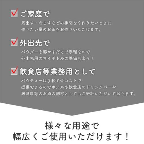 【ワンランク上の味わい深さ】パウティーロイヤルブレンド紅茶は、厳選した紅茶葉を贅沢に使用し、コク深く濃厚な味わいと上質な香りがお楽しみいただける紅茶パウダーです。ストレートティーでもミルクティーでも紅茶本来の濃厚で芳醇な風味を味わえ、リッチな気分のティータイムが手軽にお楽しみいただけます。