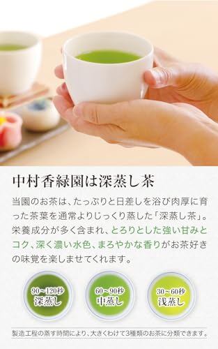 深蒸し製法により茶葉が細かいため成分が抽出されやすく、淹れると秋摘み茶ならではの黄色味を帯びた緑色の水色です。 爽やかな渋味とまろやかであっさりした味わいが特徴です。