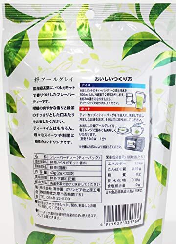 喜作園 緑のアールグレイ 2袋セット 80g【ベルガモットの香りと緑茶のハーモニー】 2g×40パック(1袋20p) / 緑茶 国産茶葉使用 緑茶アールグレイシリーズ (緑のアールグレイ)
