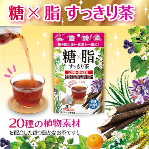 NIHON YAKKEN 糖×脂すっきり茶(20袋×3個) 健康茶管理栄養士監修 ティーバッグ 香料甘味料無添加 20種の植物素材 烏龍茶 グァバ葉 プーアル茶 桑の葉 杜仲茶 ギムネマ 葛の花 ゴボウ 日本薬健