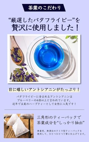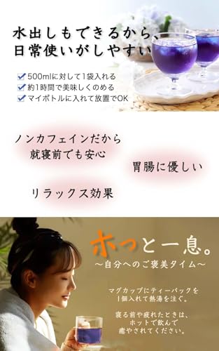 【20種類以上の栄養成分】バタフライピーとレモングラスを絶妙なバランスでブレンドしたことで、上品な味わいに仕上がっています。健康維持の強い味方としても愛飲されています。