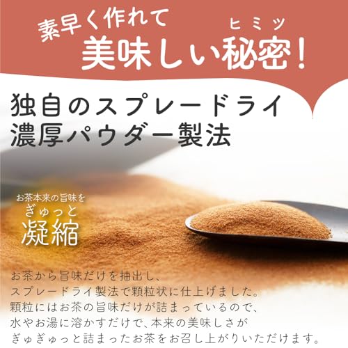 【溶かすだけで美味しいアールグレイ】お茶本来の旨みが味わえるインスタントのアールグレイティーです。濃厚パウダー製法によって、お茶本来の旨みや風味が詰まった顆粒状に仕上げ、お水やお湯を注ぐだけで簡単に溶けて、手間がいらないのが魅力です。紅茶本来のまろやかな旨みと柑橘系ベルガモットの爽やかな香りをお楽しみいただけます。水でもお湯でもすぐに溶けるのでアイスでもホットでも季節や気分に合わせてお好みでお召し上がりください。