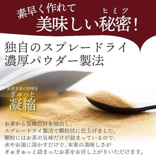 【溶かすだけで美味しい黒烏龍茶】お茶本来の旨みが味わえるインスタントの黒ウーロン茶です。濃厚パウダー製法によって、お茶本来の旨みや風味が詰まった顆粒状に仕上げ、お水やお湯を注ぐだけで簡単に溶けて、手間がいらないのが魅力です。