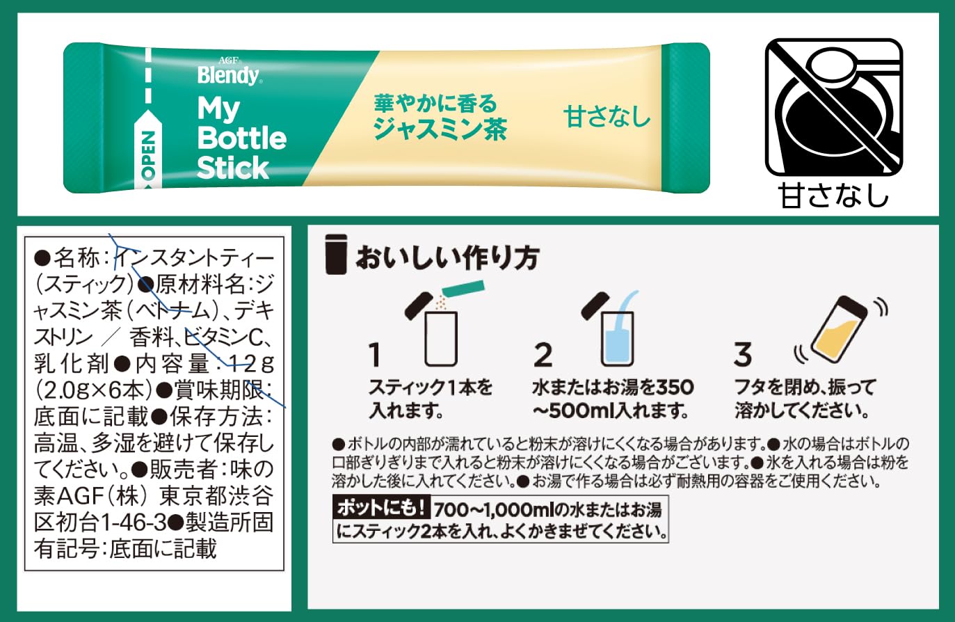 AGF ブレンディ マイボトルスティック 華やかに香る ジャスミンティー 6本×6箱 【 ジャスミン茶 】 【 水筒用 】