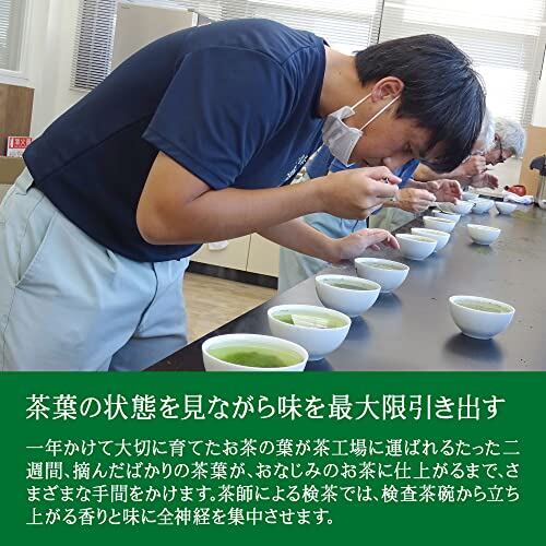 深蒸し茶は、通常のお茶よりも2~3倍ほど蒸し時間を長くして作りますので、お茶の成分が煎出されやすくなり、渋みが少なく濃厚で味わい深い緑茶になります。さらに、抹茶を加え、水色(すいしょく)のグリーンがしっかり出るお茶に仕上げました。