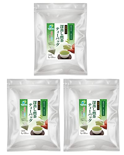 静岡県 掛川産 一番茶使用 【抹茶入り】 深蒸し煎茶 ティーバッグ お湯出し・水出し 三角ナイロンティーバッグ 湯飲み約100杯 5g×30個入 (3袋)