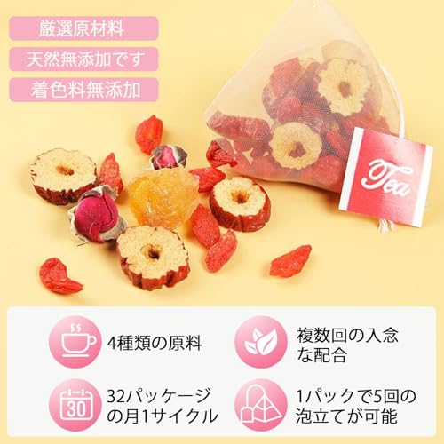 桂円ナツメクコ茶は高品質の桂円、バラ、クコ、ナツメを主原料とする中国伝統花果茶であり、原料はすべて天然無添加の高品質茶を使用し、燻蒸や着色剤は一切使用しない。シナモンは多種のビタミンとミネラルを豊富に含み、ナツメは中国の健康茶の重要な原料の一つであり、多種のアミノ酸、ビタミン、微量元素を豊富に含む。