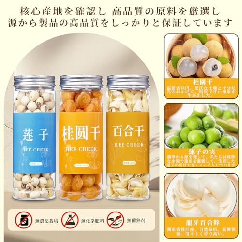 煕渓 干し龍眼 桂園 桂園干 桂圆 140g & 莲子 蓮子の実 乾燥蓮子200g& 百合 百合干 龍牙百合幹 120g 自然栽培 無農薬 無添加