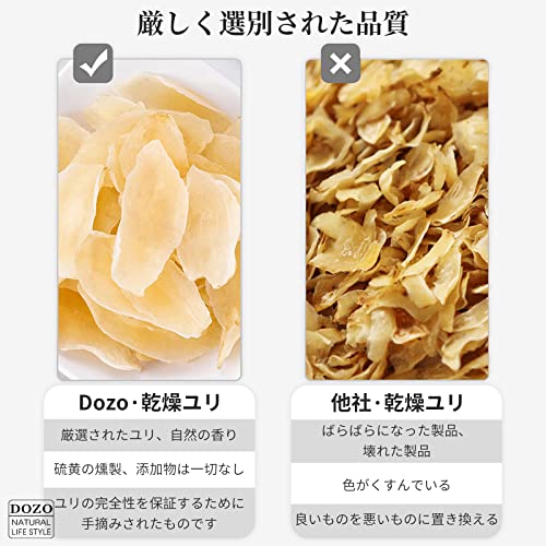厳選された高品質の百合を自然乾燥させ、一枚一枚から自然の香りが漂います、無添加、無農薬、硫黄燻蒸無し、防腐剤無しでお届けします。蓮の実、山芋、干し枣などと一緒に煮込むのがおすすめです。