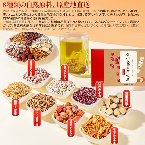 私たちの赤小豆薏米芡实茶、赤小豆、ハトムギの実、オニバスの実の3つの珍しい除 コア原料を精選し、同時に甘草、黄苦ソバ、大麦、クチナシの花とミカンの皮の5つの特色ある補助材料を巧みに組み合わせている。各原料は厳格に選別され、品質が優れている。配合は繰り返し調整され、各成分の割合は金配合比に達した。その除湿効果は一般的な除湿茶をはるかに超え、長期的に飲用し、効果が顕著である。