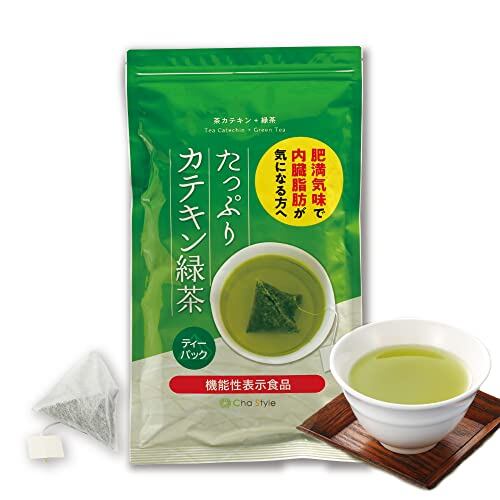お茶に含まれる茶カテキンが内臓脂肪に働きかけるティーパックタイプのお茶です。 当園の茶葉の中でもカテキン量が豊富な生茶葉を厳選しています。 茶カテキンは、お茶由来のポリフェノールの一種です。 ”たっぷりカテキン緑茶”を続けてお飲みいただけますと、 肥満気味の方の内臓脂肪を減らす機能があることが報告されています。 機能性関与成分:茶カテキン400mg含有(1日3杯で400mg以上)
