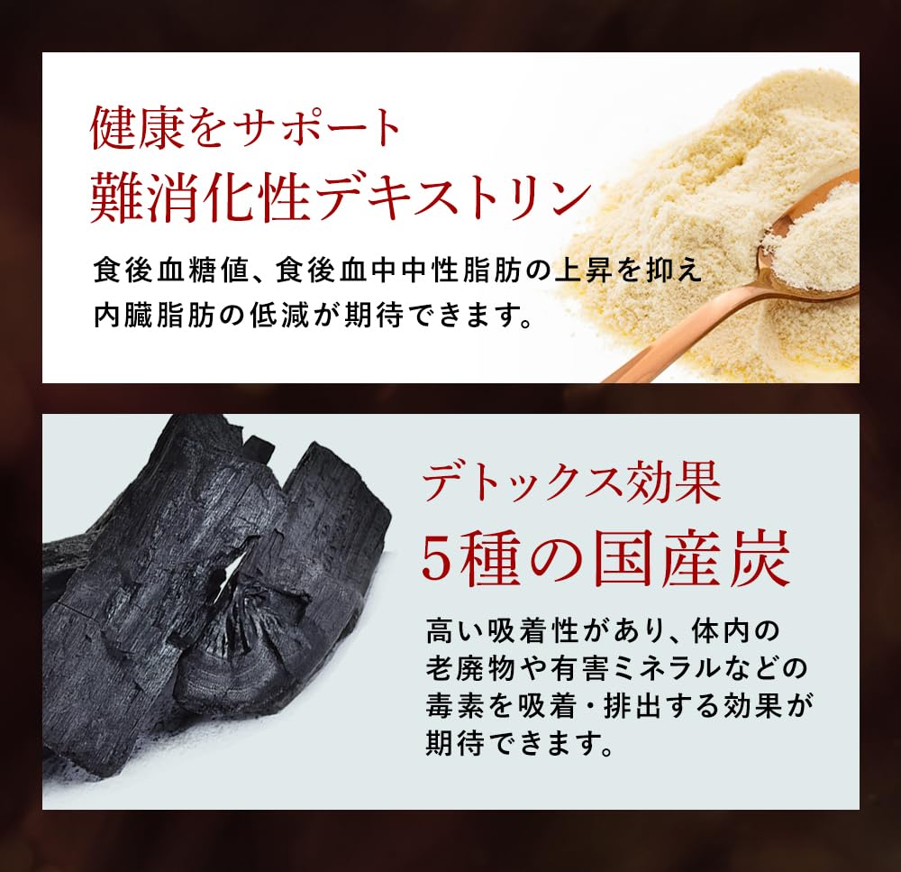 食事の脂肪や糖の吸収を抑え、食後の中性脂肪や血糖値の上昇をおだやかにする機能、肥満気味な方のお腹の脂肪(内臓脂肪と皮下脂肪)とBMIを減らすのを助ける機能、尿酸値が高めの方の食後の尿酸値の上昇を抑える機能が報告されている、ターミナリアベリリカ由来没食子酸配合。