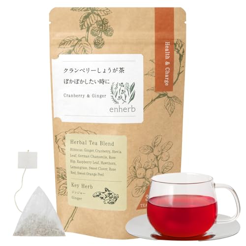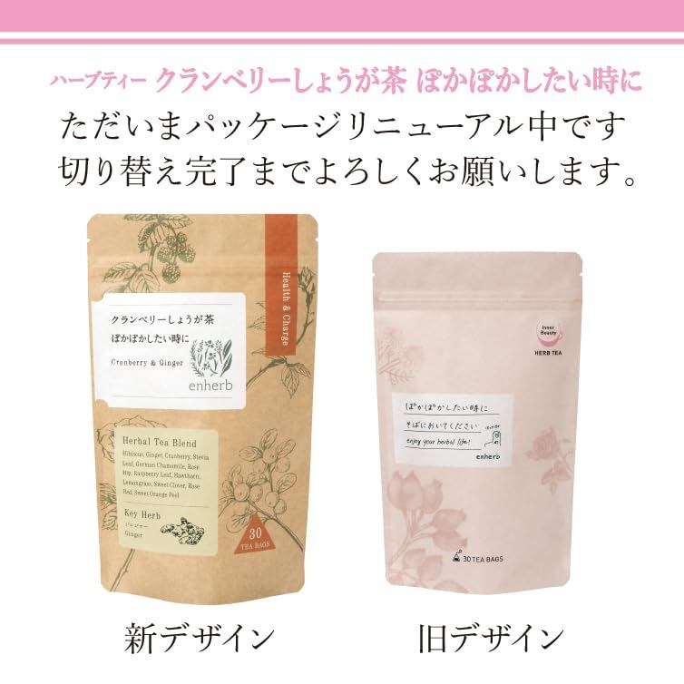 enherb ハーブティー ティーバッグ「 ぽかぽかしたい時にークランベリーしょうがー」 ×30個 デカフェ・ノンカフェイン