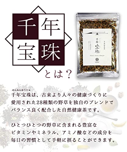 千年宝珠[自然健康茶] ノンカフェイン おいしいから続けられる自然素材の健康茶 28種の野草を独自ブレンド 天然野草のまろやかなコクと香りをお楽しみください 安心と信頼の国内製造