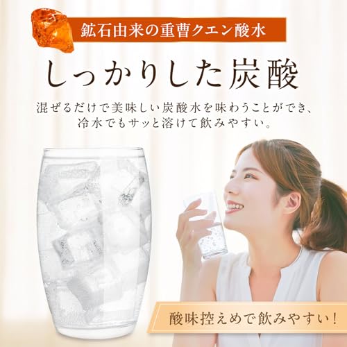 【原材料】国内製造のクエン酸と、内モンゴル産の高品質な食用重曹を使用。柑橘類に含まれるクエン酸と、天然の重曹がバランスよく溶け合い、酸っぱさ控えめですっきり飲みやすい仕上がり。品質管理を徹底し、安心の一杯をお届けします。