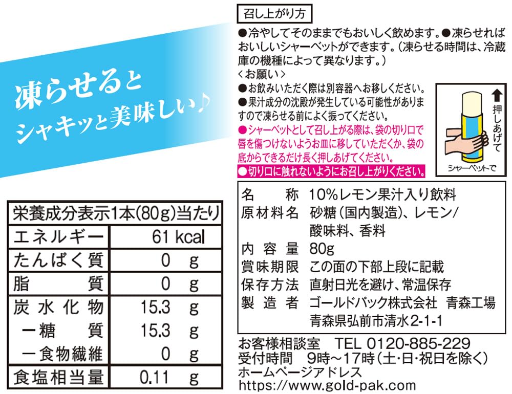 【シャーベット】 ゴールドパック 瀬戸内レモン 80g×20