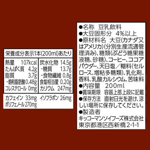 キッコーマン 豆乳飲料 カフェモカ 200ml×18本