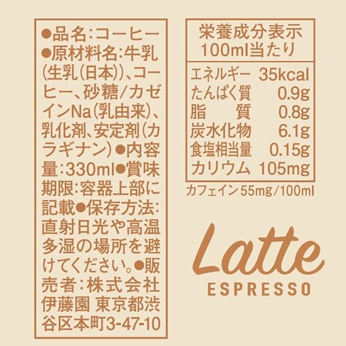 原材料:牛乳(生乳(日本))、コーヒー、砂糖/カゼインNa(乳由来)、乳化剤、安定剤(カラギナン)