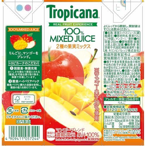 キリン トロピカーナ 100% マンゴーブレンド 250ml紙パック×24本入
