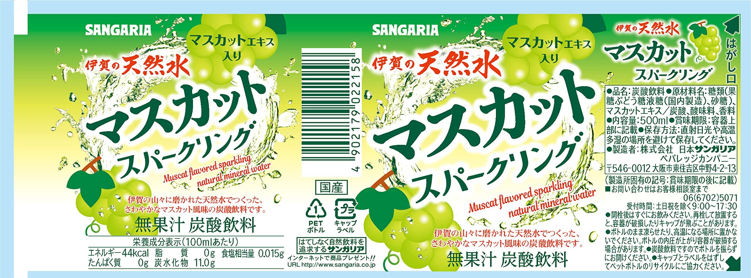 サンガリア 伊賀の天然水マスカットスパークリング 500ml×24本