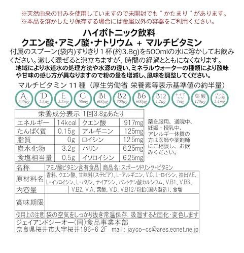 JAY&CO. 粉末 マルチビタミン 入り ハイポトニック スポーツ飲料 (低糖質ローカーボ・低カロリー) (レモン, 500ml×60本分)
