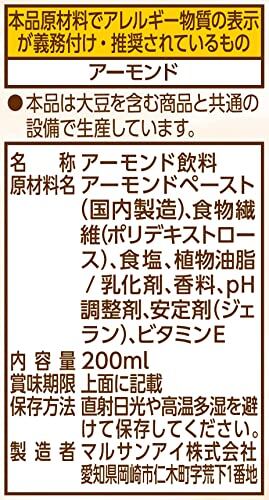 マルサン 毎日おいしいローストアーモンドミルク 砂糖不使用 200ml ×24本 紙パック