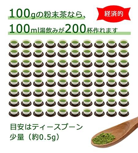 静岡県産 一番茶使用 カテキンまるごと粉末緑茶 無農薬・無化学肥料栽培 栄養まるごと食べるお茶 湯飲み200杯分 100g入 (2袋)