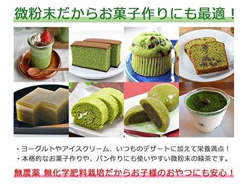 急須や茶こしがなくても美味しいお茶を楽しめますので、後片付けや食器洗いも楽です。デザートにかけたり、お菓子・パン作りにも使いやすい微粉末の緑茶です。
