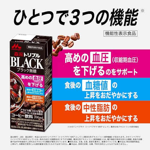森永乳業 コーヒー 紙パック ジュース 200ml 12本 トリプルBLACK 血圧 血糖値 中性脂肪 機能性表示食品 常温保存