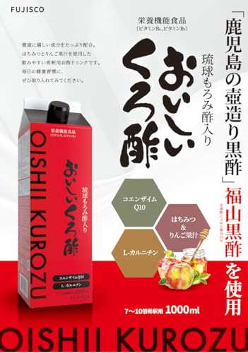 【2024年リニューアル】 福山黒酢、琉球もろみ酢が入った黒酢ドリンクです。 りんご果汁、ハチミツなどを加え、ビタミンC、B2、B6、L-カルニチン、コエンザイムQ10などをプラス。
