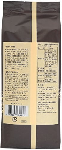 原材料:唐もろこし、六条大麦、大麦、はだか麦、どくだみ、浜茶、はと麦、黒大豆、はぶ茶、すぎな、枇杷葉、枸杞葉、あまちゃづる、シジュウム(グァバ)、柿葉、くま笹、桑葉
