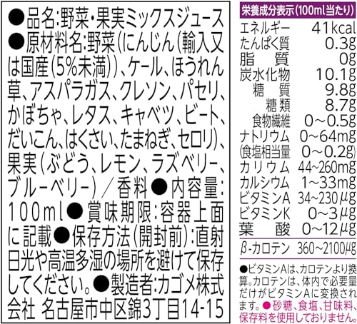 カゴメ 野菜生活100 ベリーサラダ 給食用 100ml紙パック×30本(砂糖不使用 飲みきりサイズ)