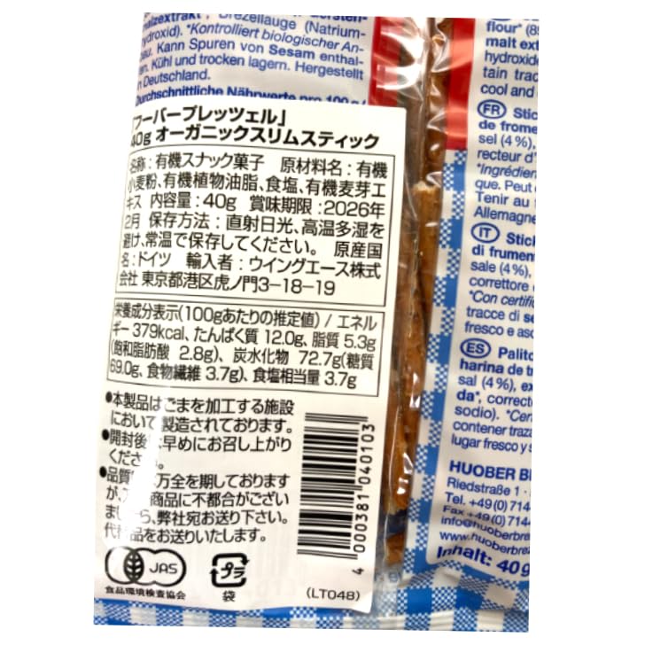 【6個セット】フーバープレッツェル オーガニックスリムスティック 40g オリジナルメッセージカード付