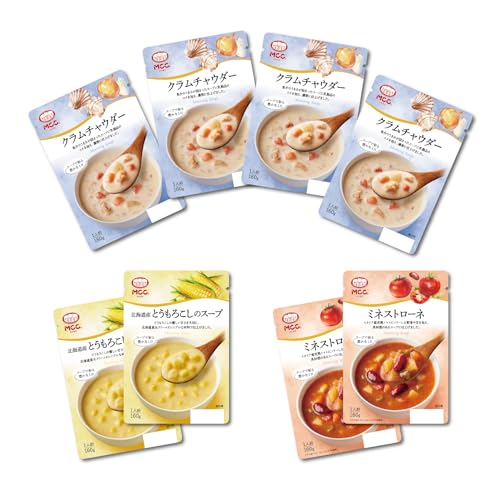 【 限定】MCC モーニングスープ 人気 3種 スープ セット (クラムチャウダー×4個, とうもろこし×2個, ミネストローネ×2個 計8個) レトルト