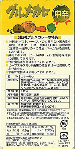 原材料:植物油(べに花油、パーム油)、小麦粉、砂糖、調味料(チキンブイヨン、酵母エキス、チキンエキス)、カレー粉、食塩、りんご果汁、麦芽エキス、香辛料